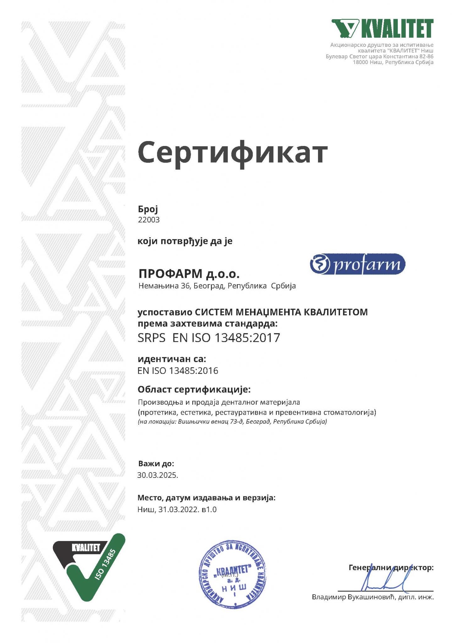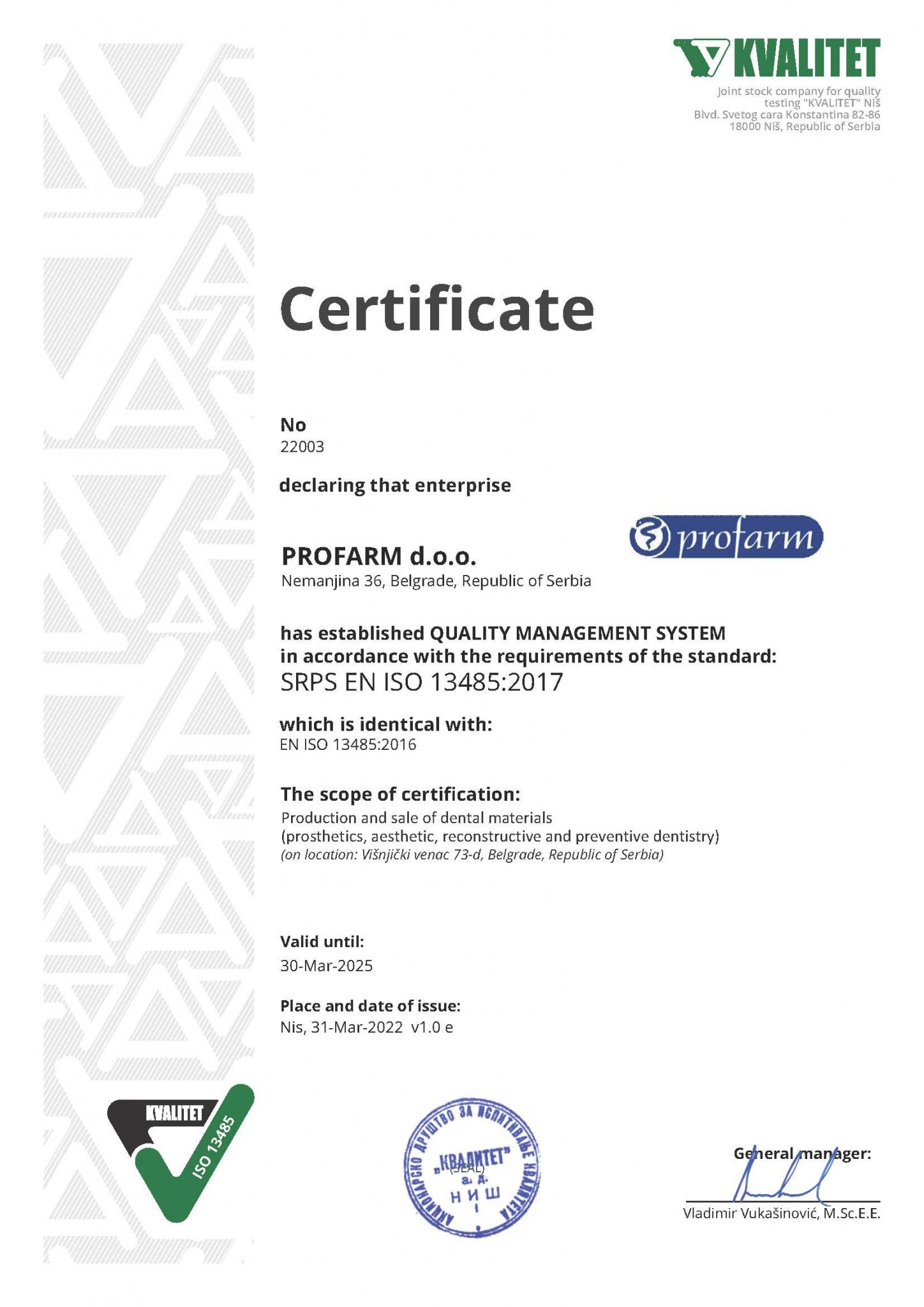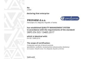2019. godine Profarm d.o.o. preuzima proizvodnju dentalnih materijala od Galenike a.d., sa ciljem nastavka proizvodnje dobro poznatih brendova. Uz saradnju sa dobro poznatim evropskim i američkim proizvođačima, asortiman Profarm-a d.o.o. se proširuje danas najsavremenijim dentalnim proizvodima.