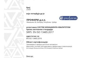 Kompanija Profarm d.o.o. ispunjava sve zakonske propise i standarde, a posebno:
