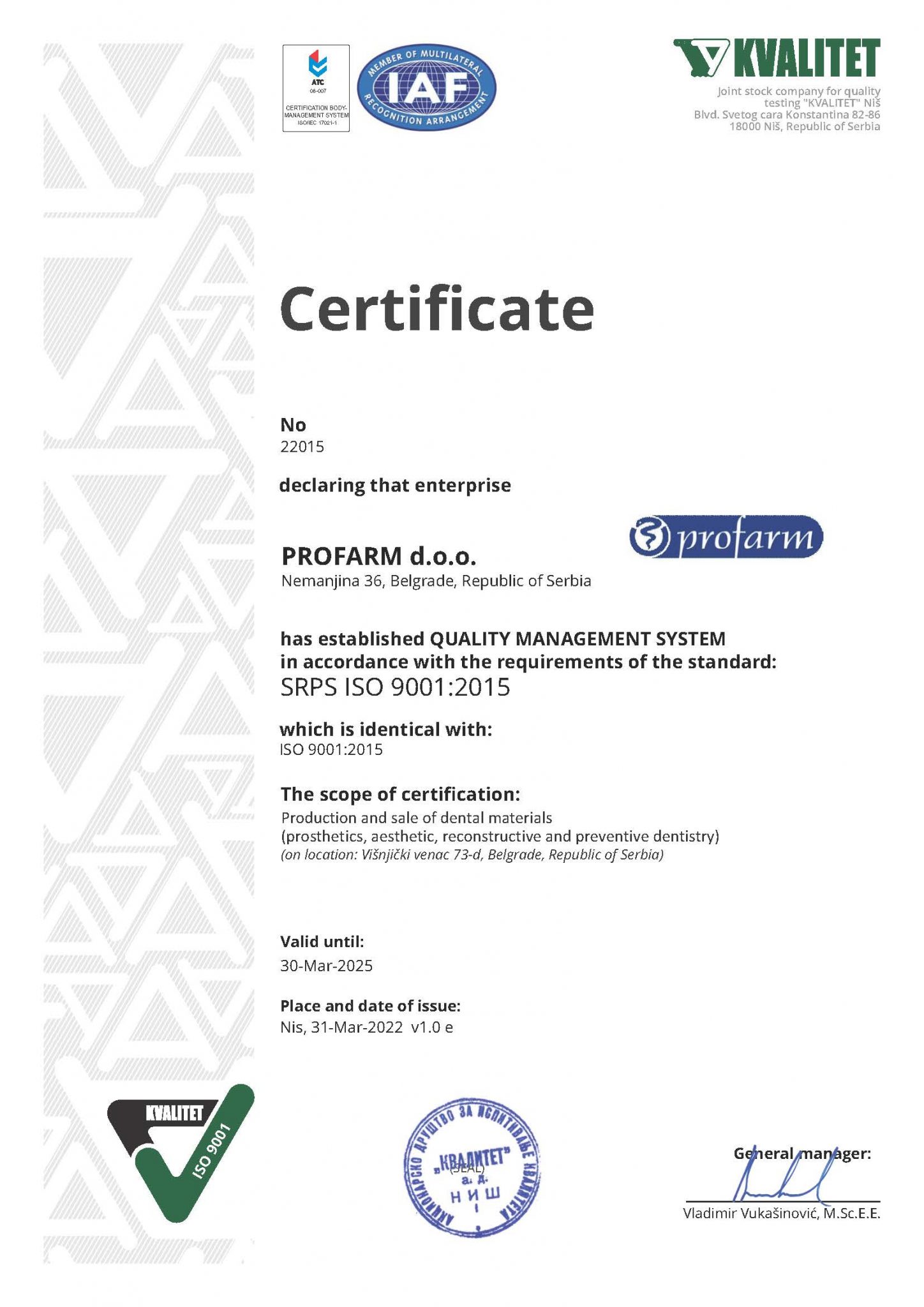 Rukovodstvo kompanije Profarm d.o.o. čine visoko obrazovani kadrovi sa višedecenijskim iskustvom u proizvodnji dentalnih materijala.